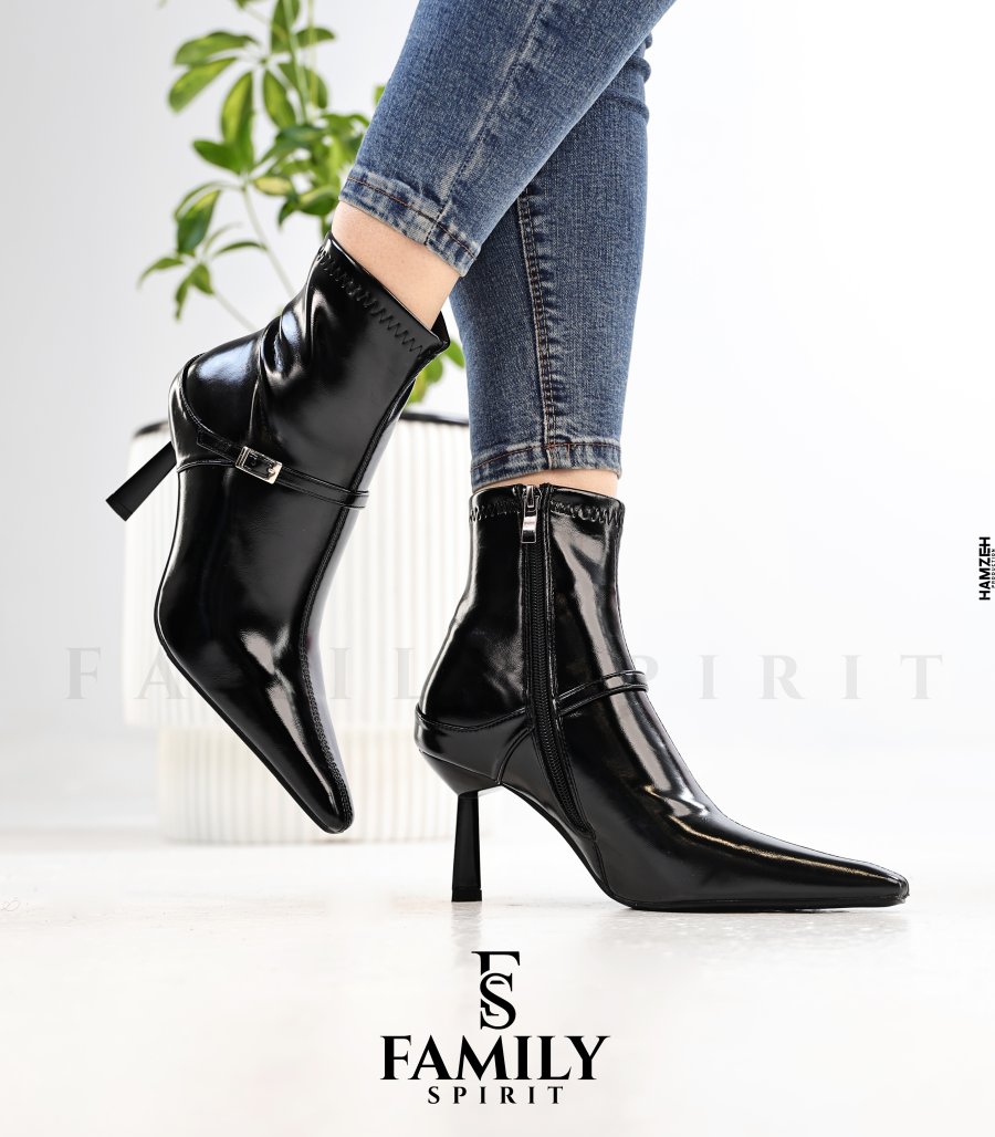كعب رفيع، مقدّمة حادة، جلد لامع (لكّ) — فخمة وعصرية بنفس الوقت.