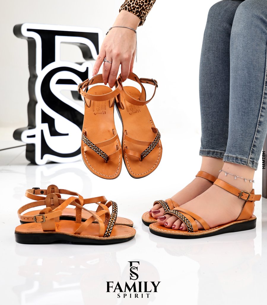 صندل ستاتي موديل (تطريز) من الجلد الطبيعي الاصلي